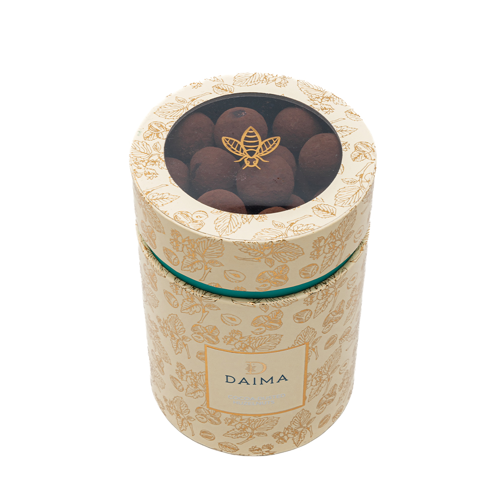 Immerse yourself in the indulgent experience of the Hazelnut Cocoa Powder Dragee Cylinder Box (270gm). Premium hazelnuts, carefully chosen for their superior quality, are embraced by a layer of velvety cocoa powder, creating a snack that is both sophisticated and decadent. Each bite is a celebration of the natural nuttiness of hazelnuts, elevated by the rich and smooth notes of cocoa. Elevate your snacking moments with this exquisite combination that caters to those who seek a perfect harmony of flavor.